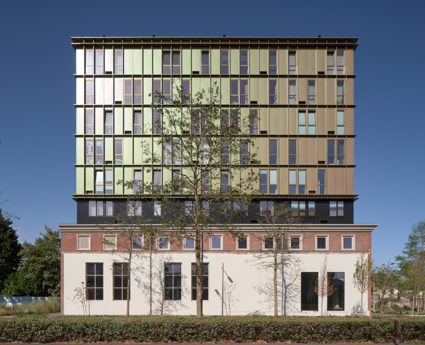 De opbouw boven het Ketelhuis is geïnspireerd door de vuurkasten van de oude ketels in het gebouw. Deze vuurkasten waren robuust en sterk van uitstraling, opgebouwd uit dikke staalplaten gemonteerd met klinknagels. Met de nieuwe cassettegevel verwijzen we naar de oude ketels. Het ritme van de nieuwe gevels past bij een heldere ingenieurs logica die je meer terug ziet in een industriële omgeving. Door deze cassettegevel overduidelijk in het zicht te monteren, creëren we een vergelijkbaar beeld en gevoel van robuustheid. De opbouw wordt gescheiden door een tussenlaag die ervoor zorgt dat de oudbouw van Ketelhuis op zichzelf blijft staan en de nieuwbouw loskomt van zijn plint. Daardoor is er een mooie geleding ontstaan tussen het oorspronkelijke gebouw en de nieuw te realiseren opbouw daarboven.