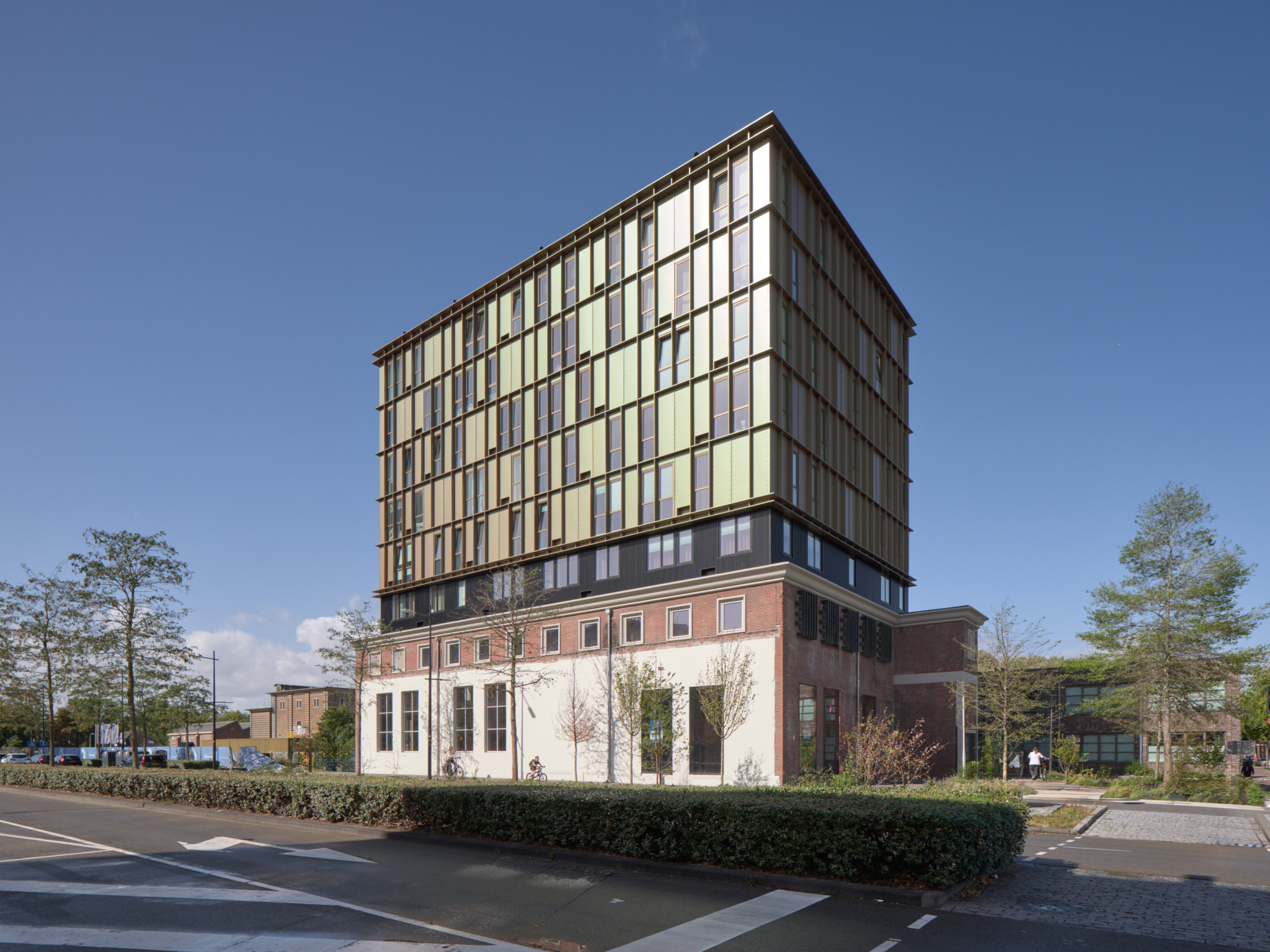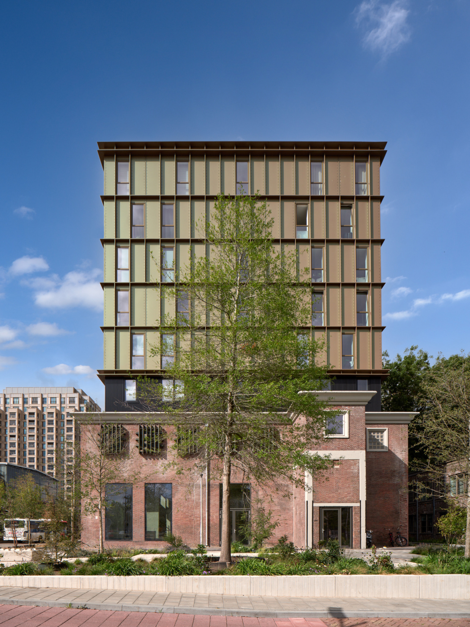 De opbouw boven het Ketelhuis is geïnspireerd door de vuurkasten van de oude ketels in het gebouw. Deze vuurkasten waren robuust en sterk van uitstraling, opgebouwd uit dikke staalplaten gemonteerd met klinknagels. Met de nieuwe cassettegevel verwijzen we naar de oude ketels. Het ritme van de nieuwe gevels past bij een heldere ingenieurs logica die je meer terug ziet in een industriële omgeving. Door deze cassettegevel overduidelijk in het zicht te monteren, creëren we een vergelijkbaar beeld en gevoel van robuustheid. De opbouw wordt gescheiden door een tussenlaag die ervoor zorgt dat de oudbouw van Ketelhuis op zichzelf blijft staan en de nieuwbouw loskomt van zijn plint. Daardoor is er een mooie geleding ontstaan tussen het oorspronkelijke gebouw en de nieuw te realiseren opbouw daarboven.